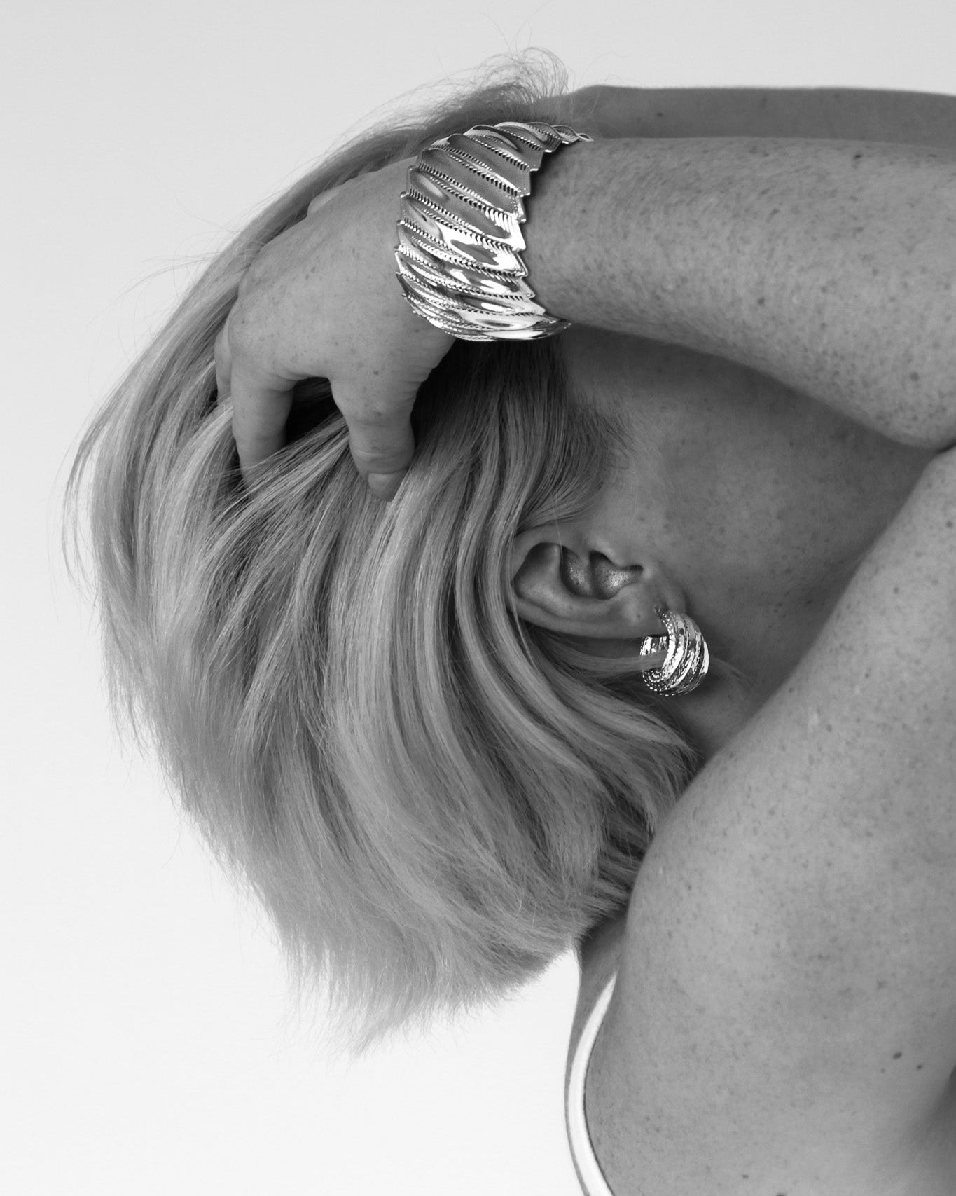 Every piece is available in 24k gold or rhodium finish.